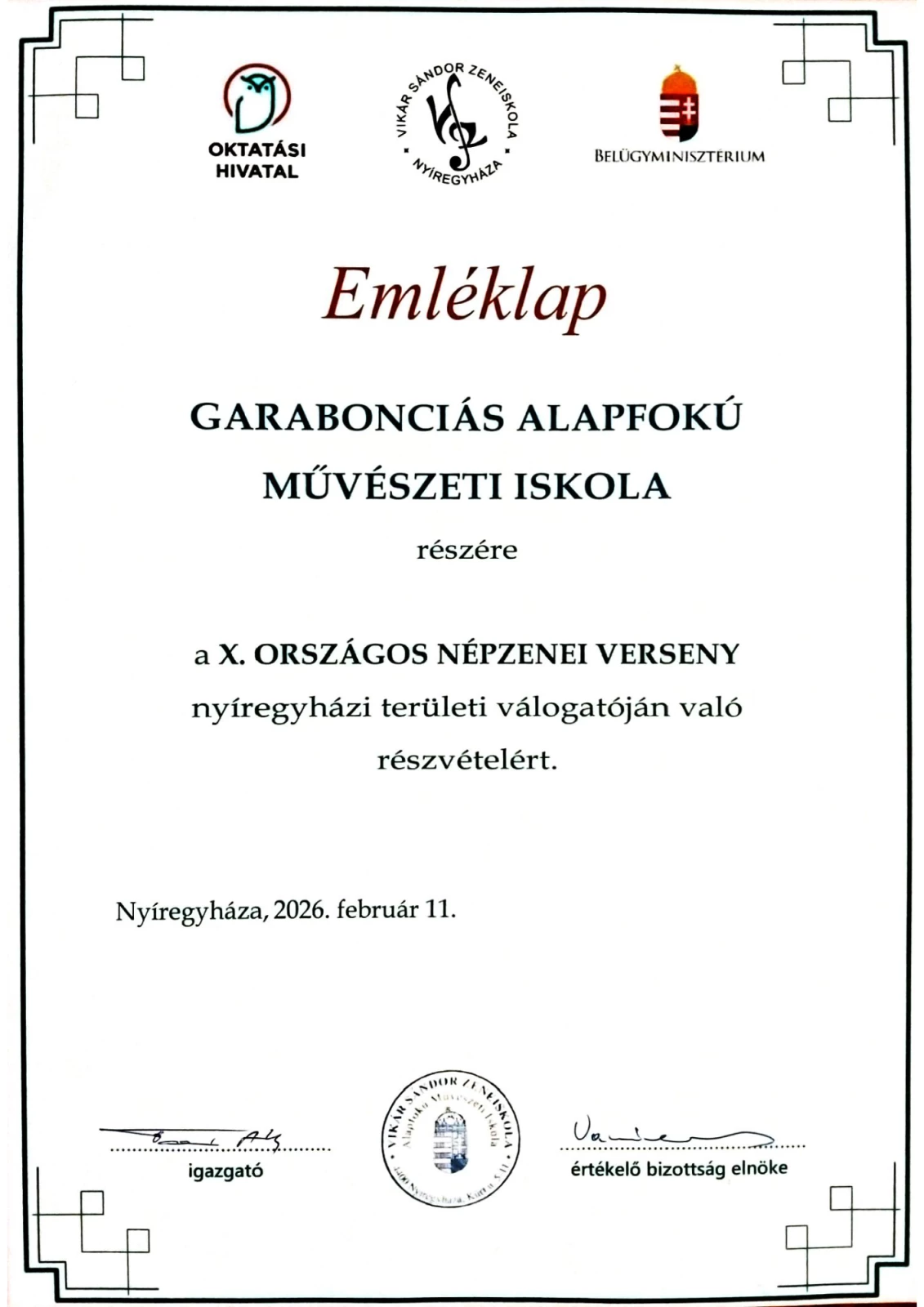 X.Országos Népzenei Verseny nyíregyházi területi válogató